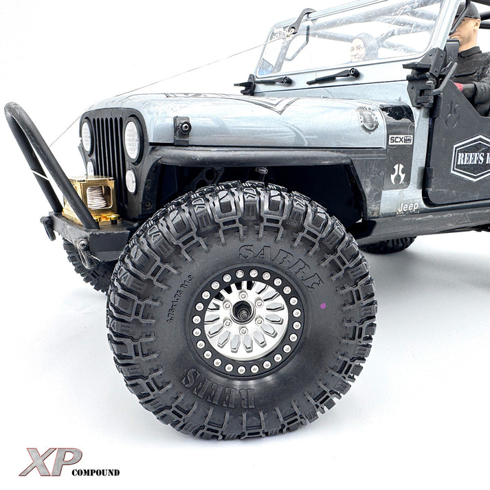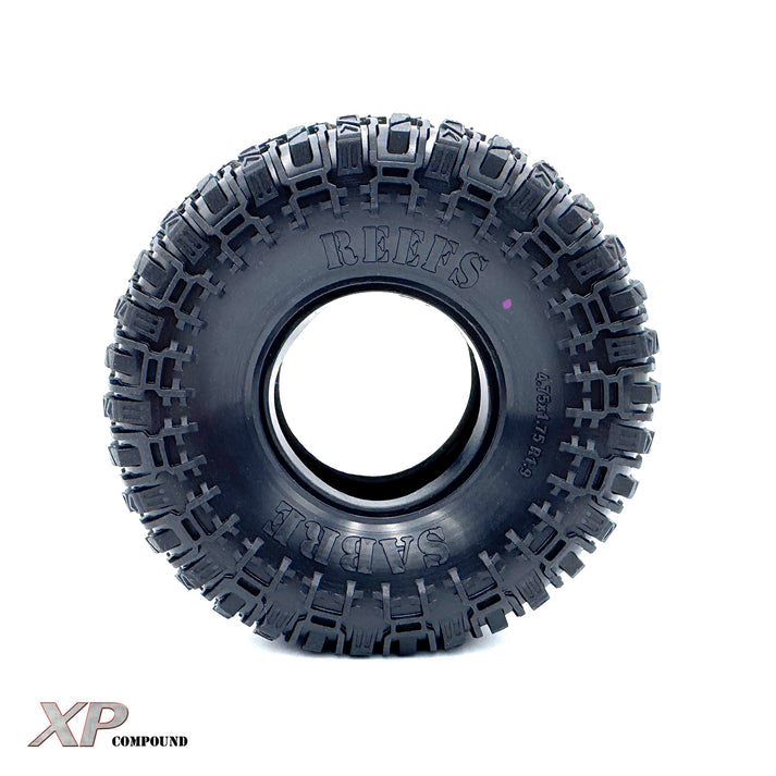 The "Sabre" 1.9" Rock Crawler tire from REEFS RC is designed for those who drive on mixed terrains, and want a rounder tire profile compared to the “Crux”. Standing at 4.75" tall, these tires feature sipped and open lugs, along with shorter “arm” like lugs, to grip even the smallest rock features. The sidewall offers a supported rib design to grip and hold, assisting in pulling up challenging lines. The sidewalls of this tire slightly thicker to give added support on steep vertical climbs and sidehills. These tires are made from Reefs Pink compound, which has been selected for colder temperatures and slick conditions. This compound is softer and stickier than our gray compound ensuring traction on even the most difficult terrain.